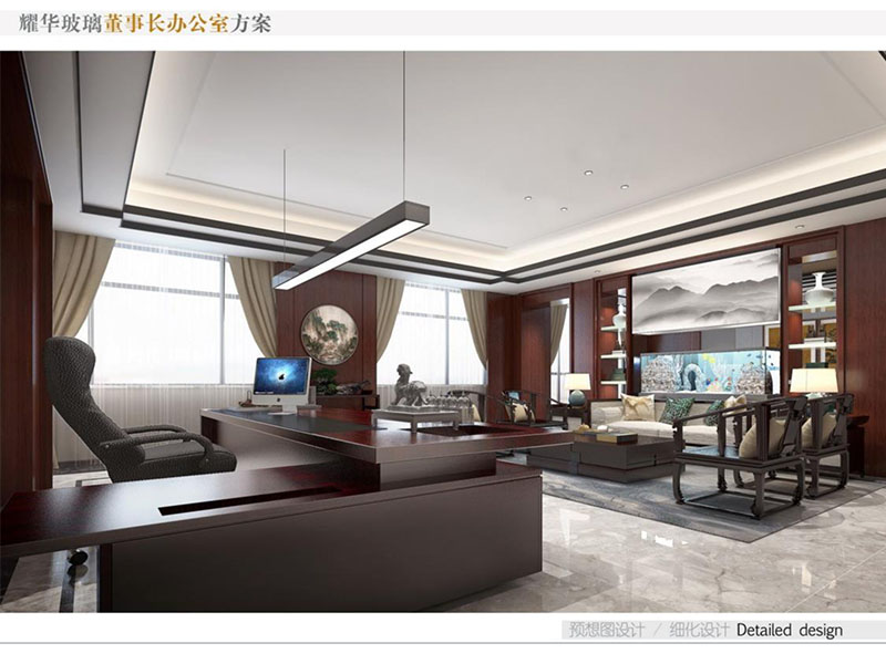 耀華玻璃董事長辦公室裝修效果圖彰顯出了企業(yè)的高端形象。董事長辦公室設(shè)計(jì)采用了中式風(fēng)格,運(yùn)用高質(zhì)量的木材、優(yōu)質(zhì)玻璃等,給辦公室營造出沉穩(wěn)的氣氛。空間布局合理,既有寬敞的辦公區(qū),也有舒適的接待室和休息區(qū)。同時(shí),辦公室內(nèi)也會(huì)融入耀華玻璃的特色元素,如玻璃藝術(shù)品或公司標(biāo)志,體現(xiàn)企業(yè)品牌和創(chuàng)新精神。